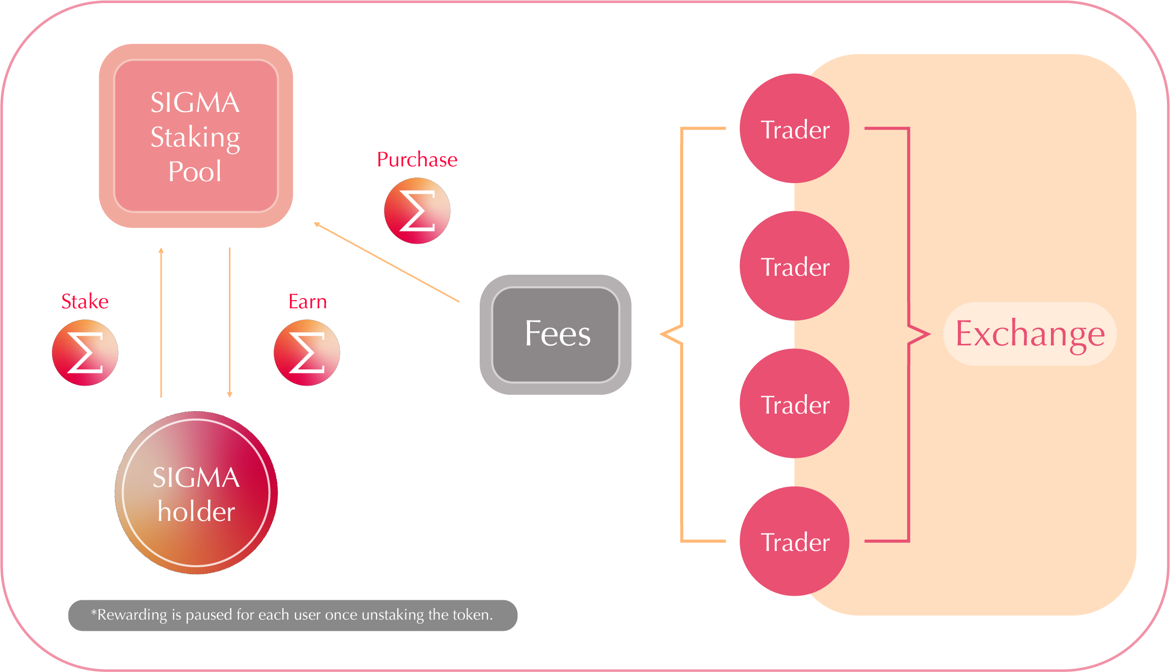 The Sigmaswap's Staking Pool distributes SIGMA to SIGMA holders.